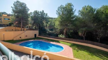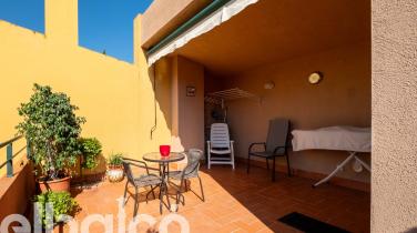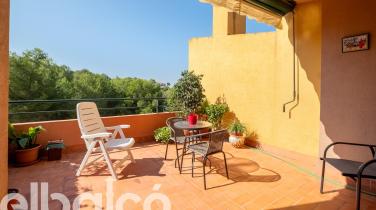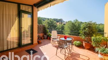 Terrassa solàrium a la planta superior: Un racó privat amb vistes clares a la piscina comunitària i l'exuberant muntanya. Equipada amb tendal, és el lloc ideal per contemplar la posta de sol amb total privacitat.